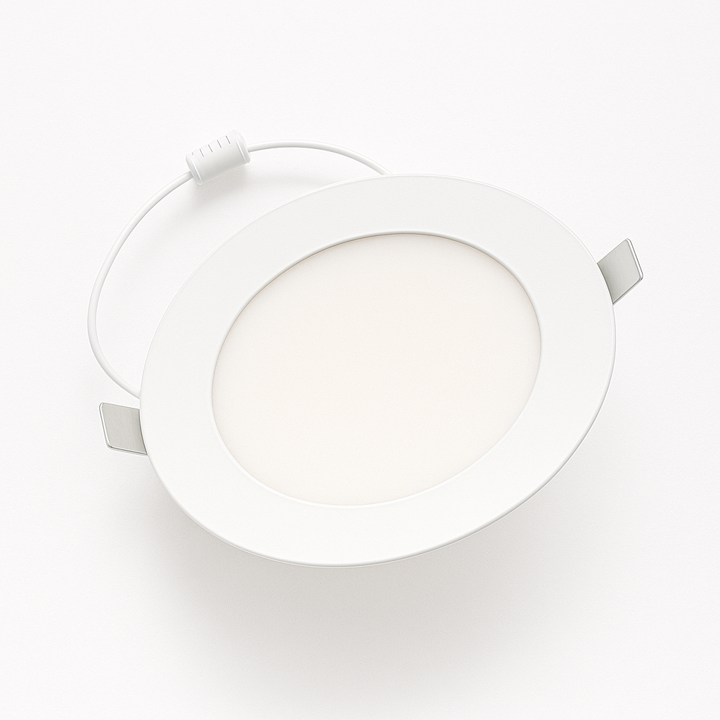 Emballage individuel, PRO-SP6 Panneau mince, 4 po, 8W (750lm), sélection de 27-30-35-40-50K 120V gradation Triac, blanc, câble FT6, endroits humides, Energy Star